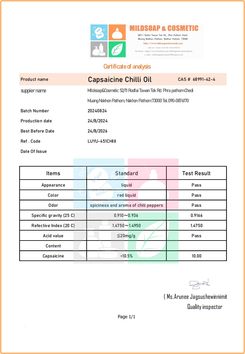 ***ปริมาณการใช้(ใช้ความเข้มข้นของแคปไซซิน อยู่ที่ 0.025% - 0.25%)