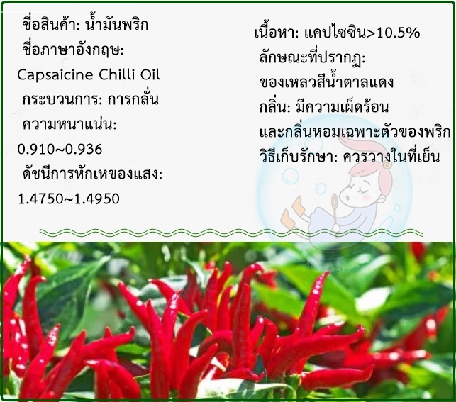 ใช้สารสกัดพริก Capsaicine Chilli Oil 0.25-2.5% ในผลิตภัณท์ลดอาการปวด