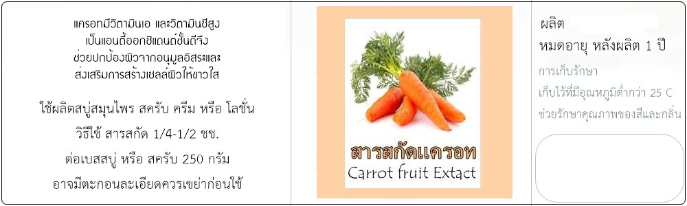 แครอทมีวิตามินเอ และวิตามินซีสูง สารสกัดแครอทด้วยแอกอฮอล์ผสม ปริมาตร มล. หมดอายุหลังผลิต 1 ปี ![]() |
