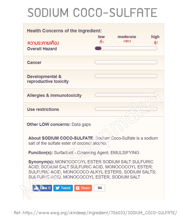![]() SODIUM COCO-SULPHATE /โซเดียม โคโค-ซัลเฟต (SCS) Sodium alkyl sulfate based on coconut oil ![]() INCI Name: Sodium Lauryl sulfate/SODIUM C12- ![]() ![]() |